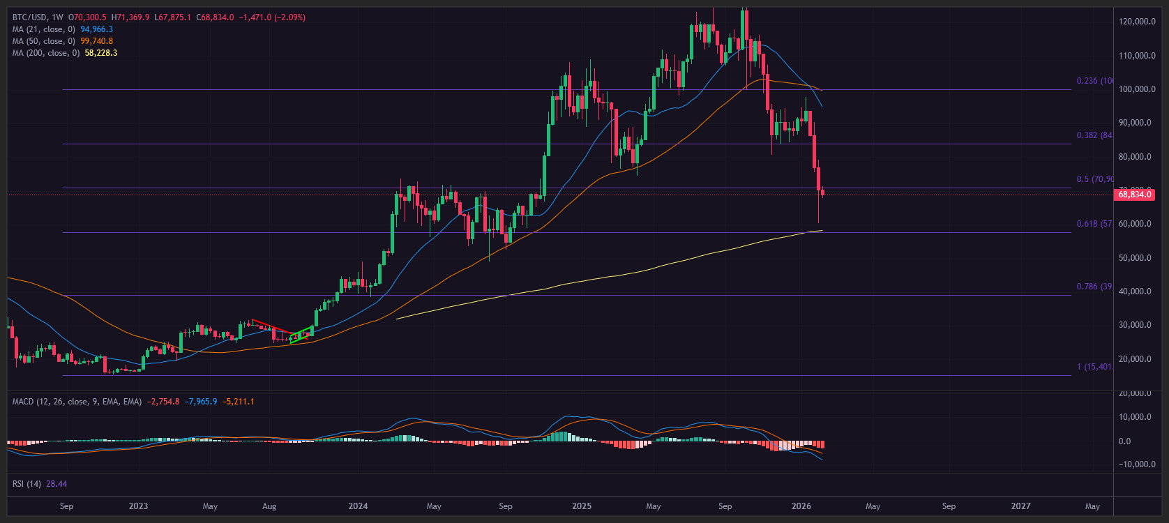 Bitcoin has recovered some of last week’s losses but is still very volatile as it looks for a buying zone. The overall cryptocurrency space also seems to be picking up and improving, with thin liquidity and big spreads in the ask and bids. Finding BTC’s bottom is only possible with a long‑term accumulation strategy, the only approach is an aggressive dollar‑cost averaging (DCA) below $58K, which is the 200‑week moving average.